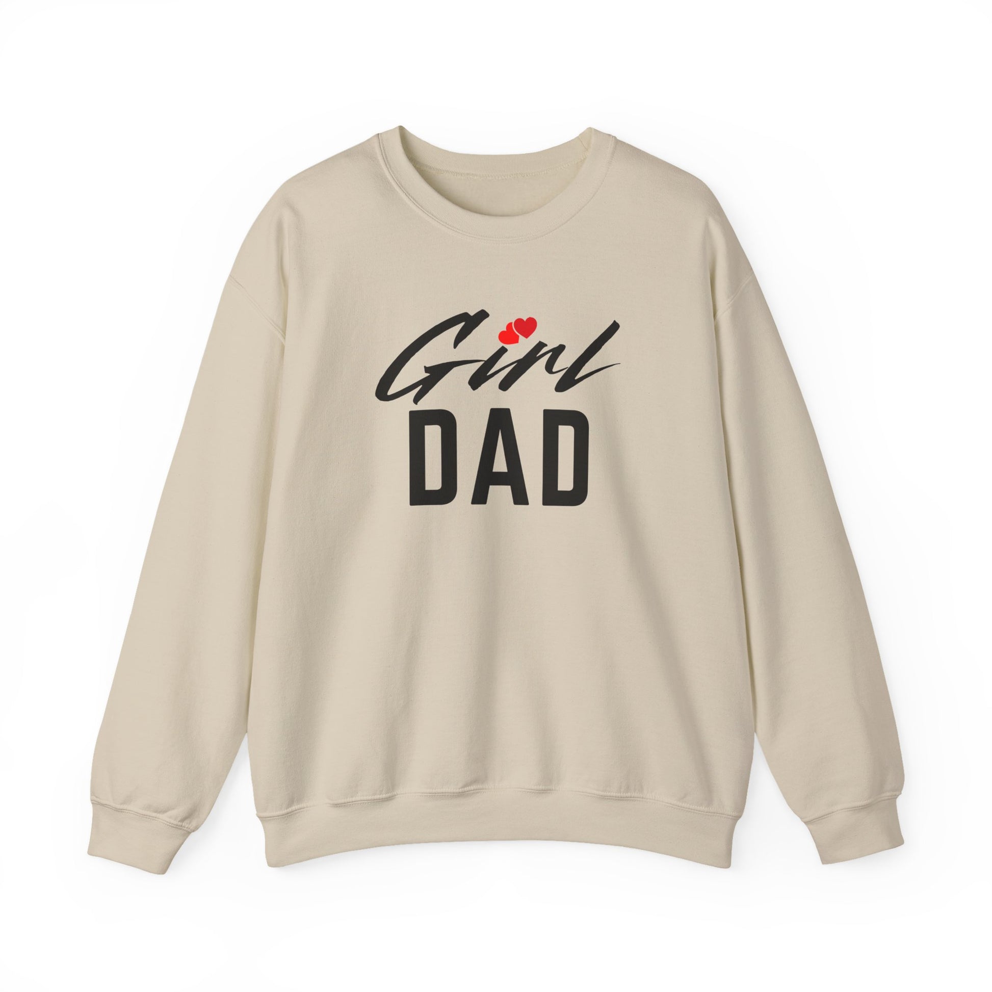 Soft, sturdy, and quietly proud — this sweatshirt celebrates the everyday bond between a dad and his daughter. The clean white crewneck carries a simple, bold “Girl DAD” design with a tiny heart detail, a small touch that reads like a private smile. Wear it to school drop-offs, weekend projects, or cozy movie nights. The medium-heavy cotton-poly blend drapes comfortably, holds its shape, and stands up to repeated washings. It feels like a reliable layer you reach for when you want to show love without saying a lot.