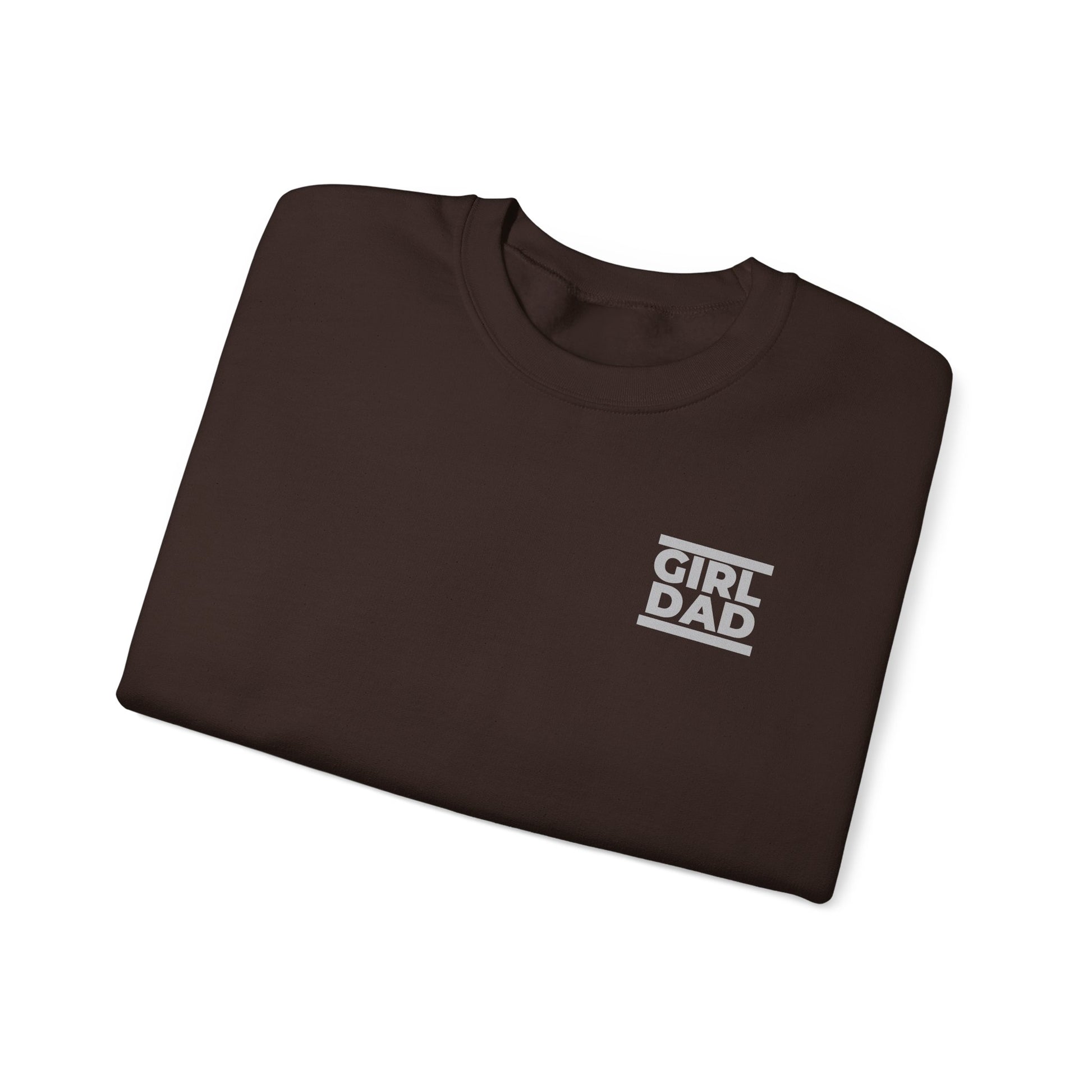 A clean, cozy crewneck sweatshirt embroidered with a subtle “GIRL DAD” motif on the chest. The mid-weight cotton-poly blend feels substantial without being bulky, and the classic crew cut keeps the silhouette simple and wear-anywhere. Soft ribbing at the collar, cuffs, and hem holds shape through repeated wear. Thoughtful touches — like tubular knit construction for a smooth side-seam-free look, double-needle stitching at stress points, and a tear-away label for itch-free comfort — make this more than just a logo on fabric. Ethically sourced US cotton and OEKO-TEX certified dyes give the piece a responsible, long-wearing finish that stands up to everyday life.