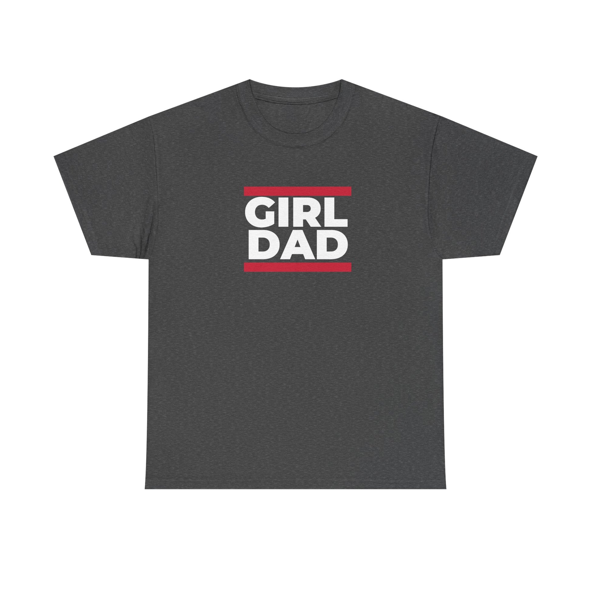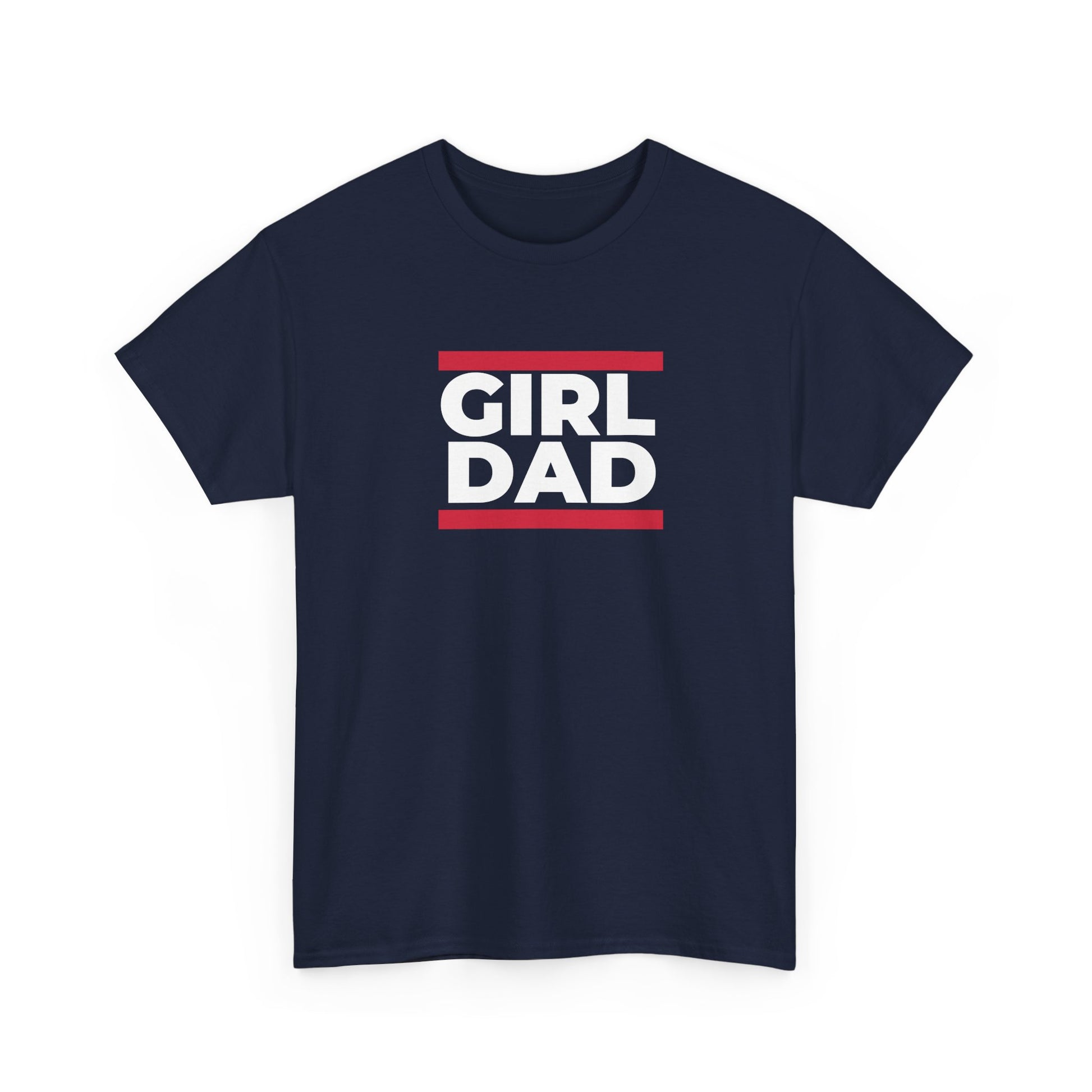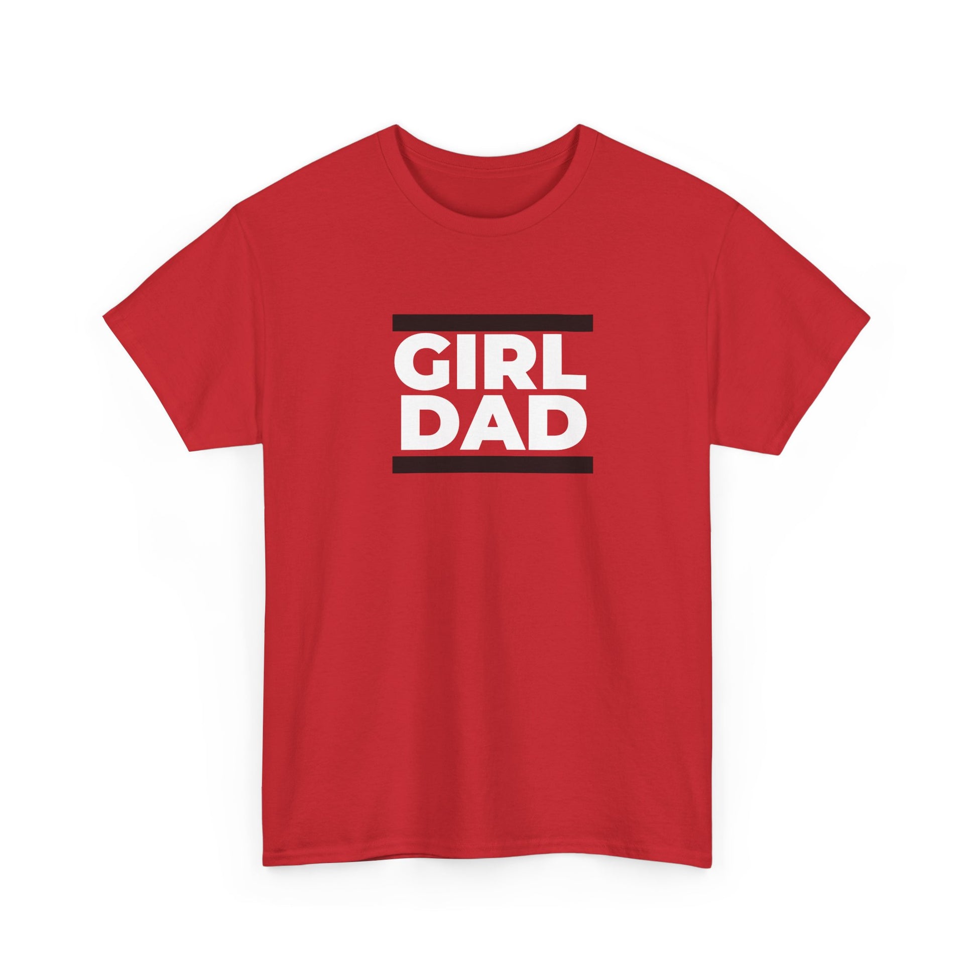 A clean, confident tee that says it simply: GIRL DAD. This classic crew-neck shirt pairs bold, block lettering with two narrow red bars for a straight-forward, modern look that reads from across a room. The medium-weight cotton feels substantial but breathable — the kind of shirt you reach for when you want to be comfortable and clear about who you are. Wear it to weekend soccer games, school pickups, casual meetups, or when you’re helping out at a bake sale — it sits easily under a jacket or worn on its own. The understated design keeps the message front-and-center without fuss, letting the wearer show pride in a relaxed, everyday way.